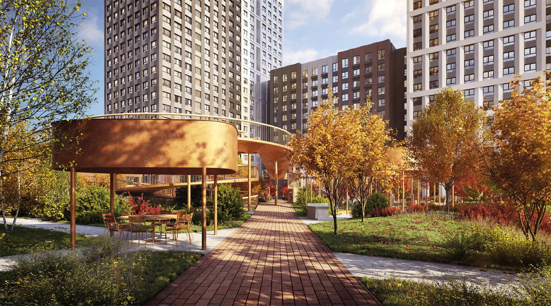 Для малышей обустроены игровые площадки, а взрослые могут поддерживать форму в спортивных зонах и на беговых дорожках. Места для отдыха — амфитеатр, лаунж-зоны и уютные гамаки — подходят для всей семьи. Центральной частью комплекса стал уникальный воздушный мост-променад шириной 4 метра, который соединяет дома, предоставляя жителям удобное место для прогулок и общения с соседями. «Страна.Заречная» — это квартал, где каждый найдет своё место для жизни и вдохновения.