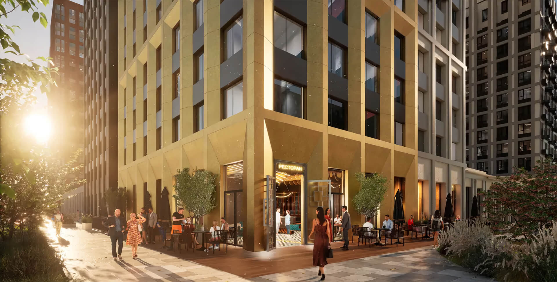 Гранд-лобби дополнительно оборудовано детской игровой зоной, постаматом и местом для получения посылок, что делает его ещё более функциональным. Все входы в корпуса выполнены на уровне пола, обеспечивая безбарьерный доступ для всех жителей, включая семьи с маленькими детьми и людей с ограниченными возможностями.